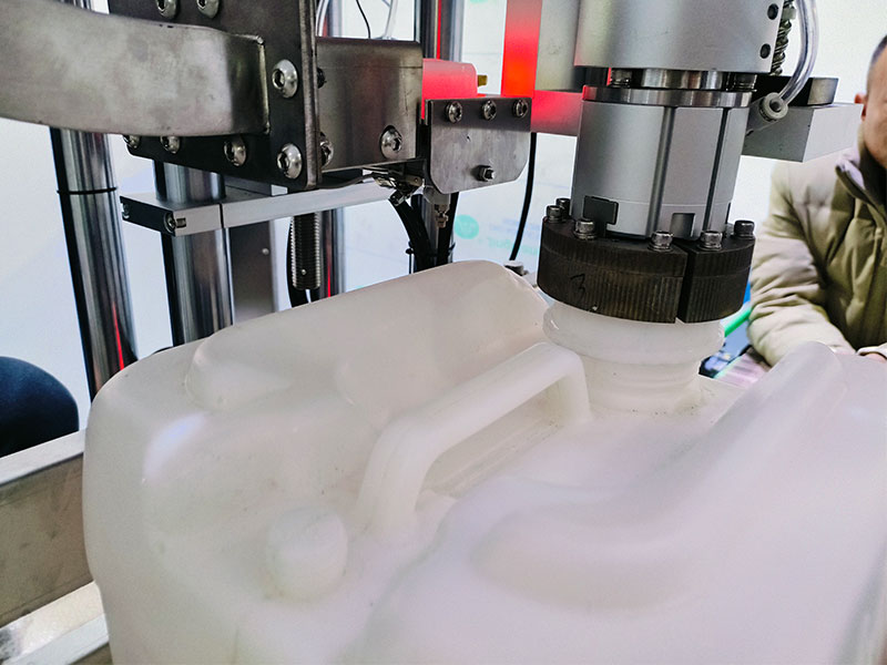 1、自動上桶、定位,全自動化工桶灌裝機通過滾筒線,可自動將空的容器桶送至灌裝工位,燃油再由氣動夾桶裝置,進行自動夾緊并精確定位操控。