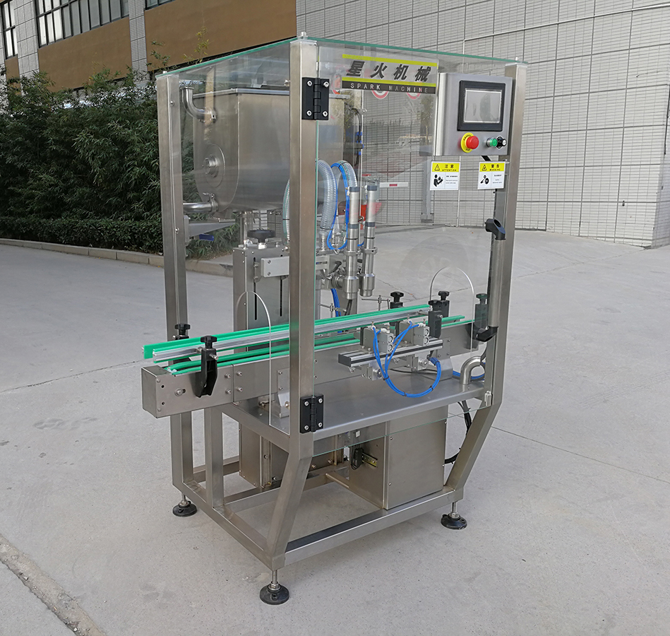 該機(jī)適合灌裝顆粒類醬料,是全自動(dòng)辣椒醬灌裝機(jī)和豆豉醬灌裝機(jī)通用設(shè)備,目前在國(guó)內(nèi)屬于比較先進(jìn)的灌裝機(jī)產(chǎn)品,他的產(chǎn)生解決了以前辣椒醬廠家需要大量人力才能完成灌裝的難題,并且提高了產(chǎn)品的灌裝精度。該機(jī)和物料接觸部位全部采用316L不銹鋼制成,動(dòng)力使用臺(tái)灣亞德客氣缸推動(dòng),整機(jī)干凈大方、動(dòng)力強(qiáng)勁,使很多客戶順利解決了醬料生產(chǎn)企業(yè)QS認(rèn)證。